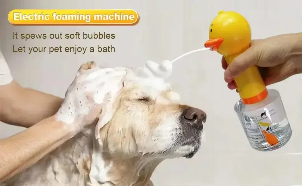 Electric Dog Shampoo Dispenser Dog Shampoo Sprayer Duck Shampoo Foamer for Pet, Foaming Soap Dispenser for Bathtub, Kitchen Sink