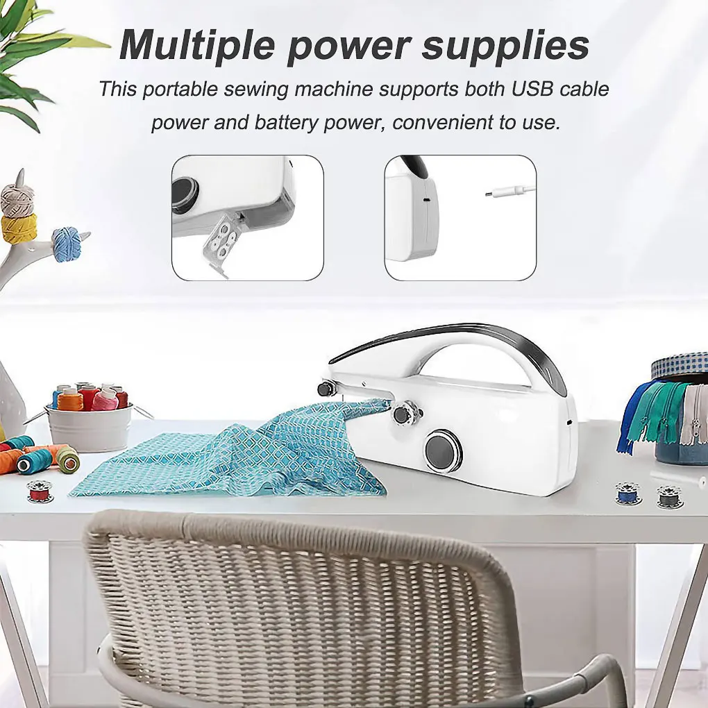 Multiple power supplies: This portable sewing machine supports both USB cable power and battery power, convenient to use.