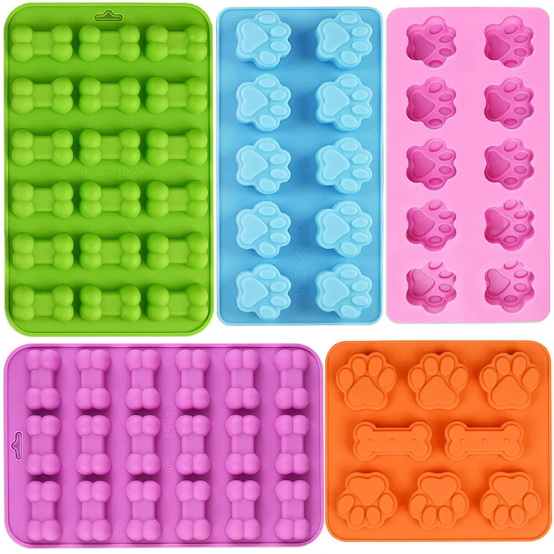 Puppy Dog Paw and Bone Silicone Molds Food Grade Baking Molds for Chocolate Jelly Ice Cube Dog Treats Biscuits Reusable Bakeware